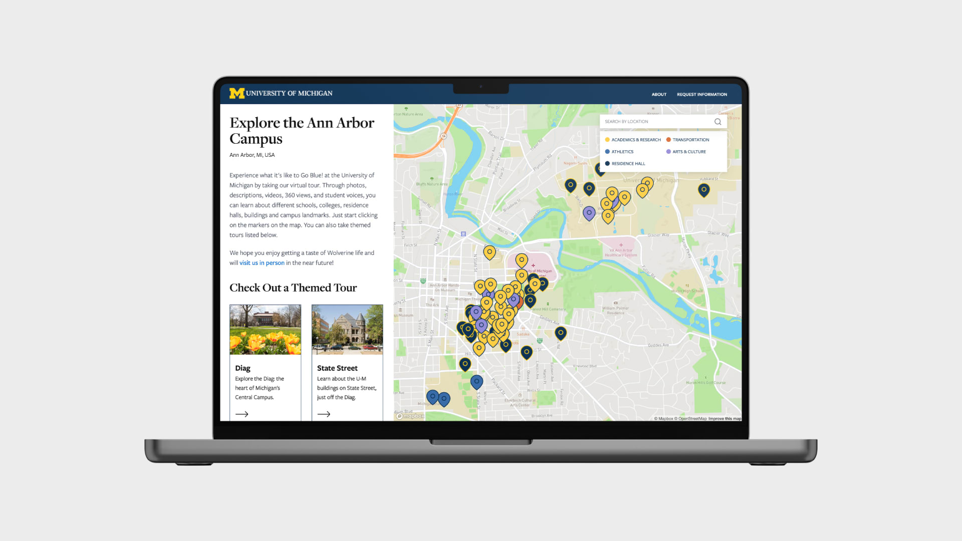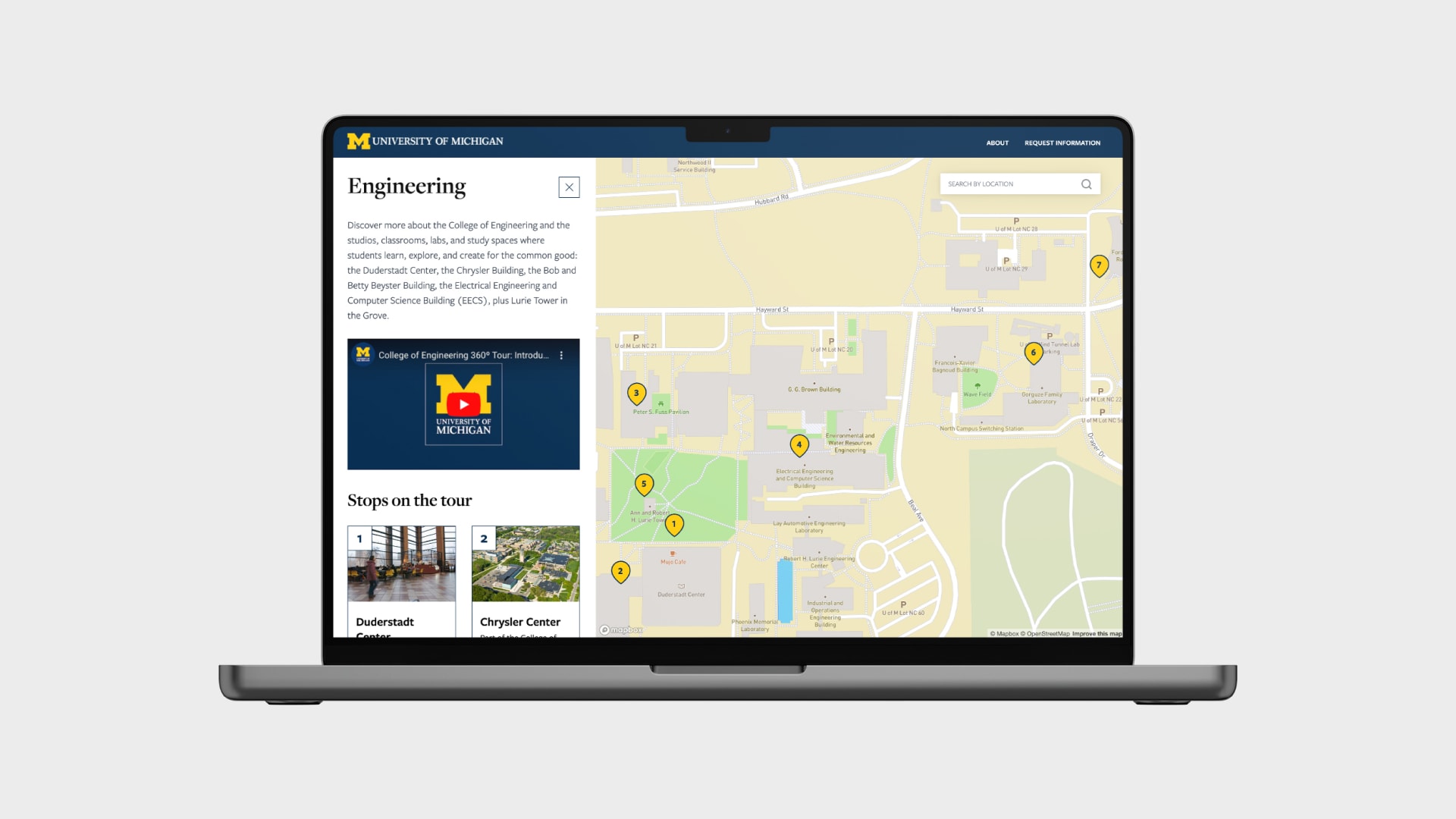 Research shows that as students narrow their college choices, they want to discover what a campus is really like. For many reasons, some families cannot make the trip to Ann Arbor to experience campus in person. We can lift awareness and engage prospective students using virtual tours, including the use of 360 videos.
